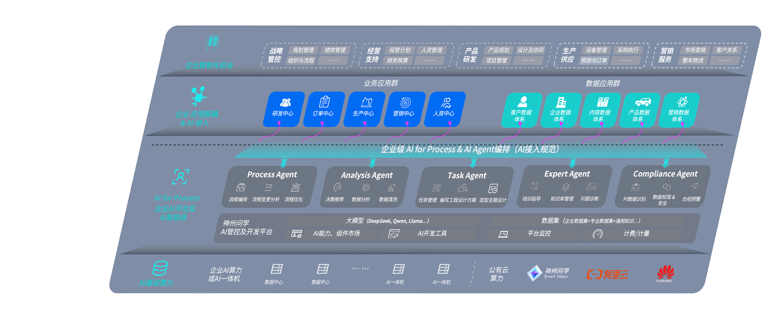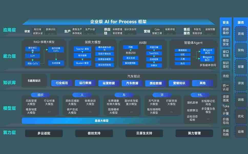 意昂2问学智车解决方案是一套基于AI技术的汽车行业智能化系统,,,覆盖从底层算力到顶层AI应用的全栈方案。。方案由算力层、、模型层和应用层组成:算力层,,,,方案支持多种一体机配置,,,,具备云端灵活部署、、、多云适配以及动态优化计算资源的能力;模型层,,,,意昂2问学平台版提供了企业级AI应用一站式构建与管理平台,,,支持基于后训练强化技术的汽车企业专属模型的训练、、、、评测和运营;应用层,,意昂2问学DeepSeek版提供包括超级员工、、智能招采、、、智能营销、、、、智能客服、、AI for BI等一系列解决方案,,可助力汽车行业实现数字化转型,,,,让管理更智能、、响应更敏捷。。。